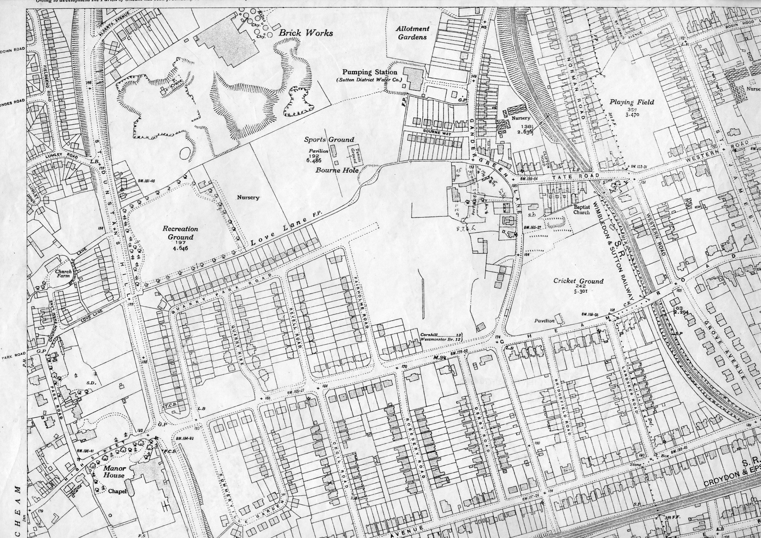 Cheam: East Love Lane OS 1866-1867 1st Edition