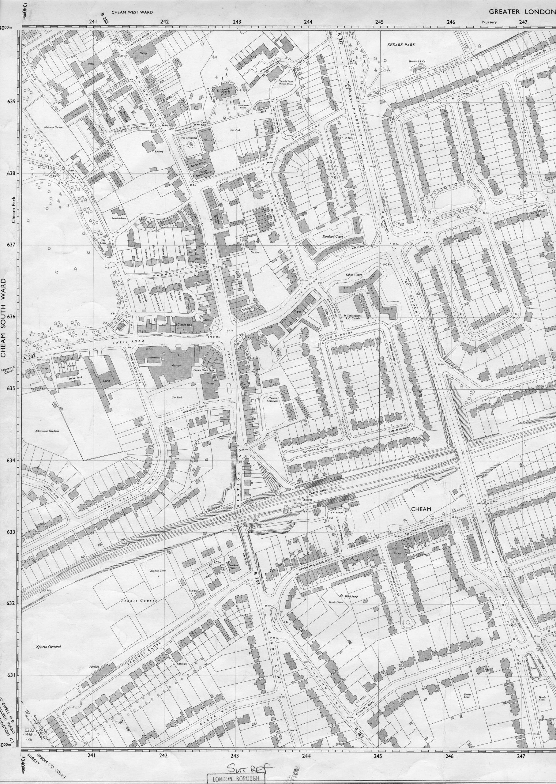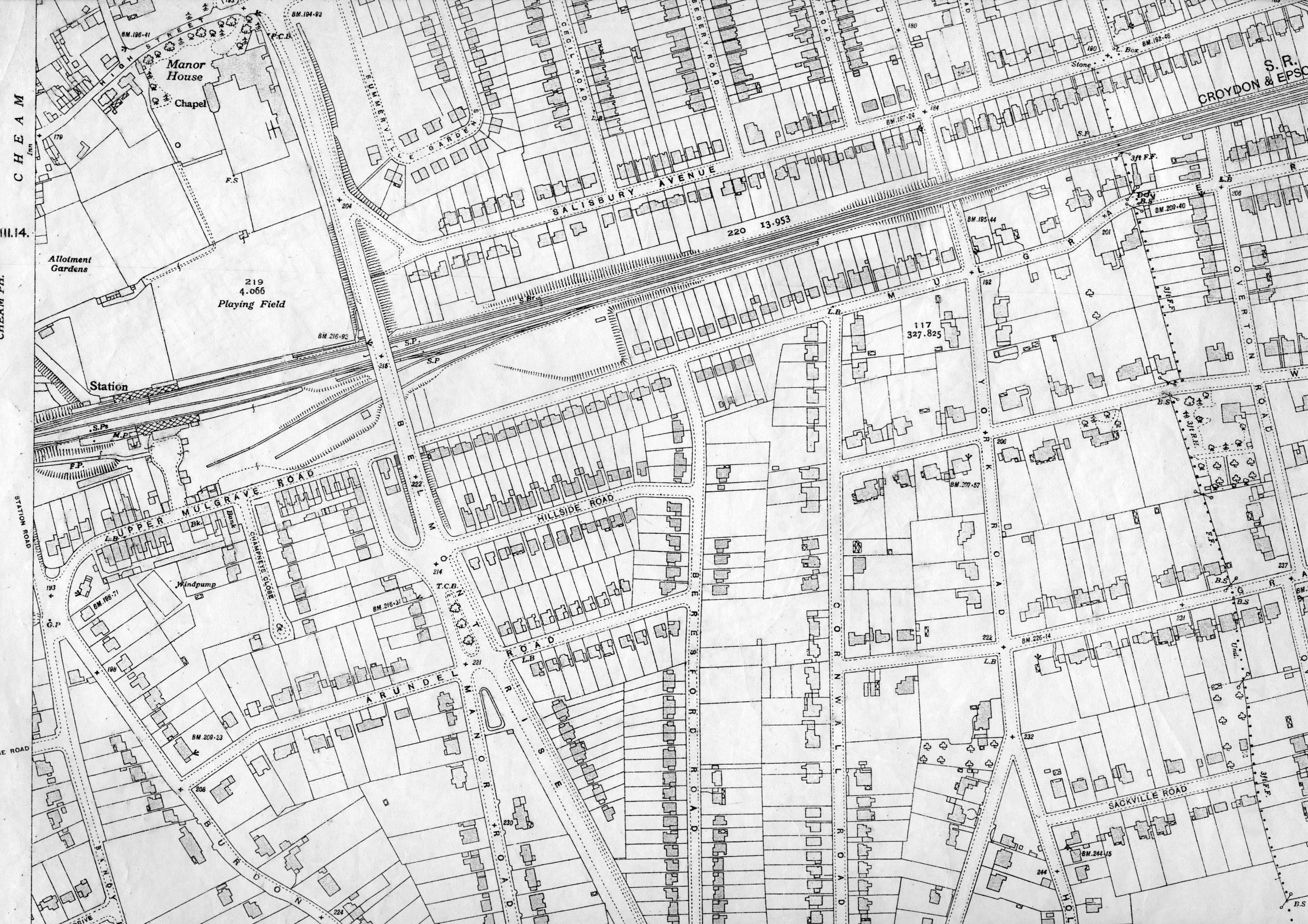 Cheam: South, Railway Station OS 1866-67 1st Edition